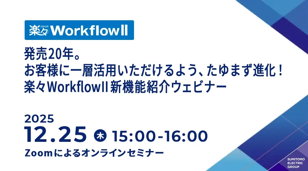 発売20年。お客様に一層活用いただけるよう、たゆまず進化! 楽々WorkflowII新機能紹介ウェビナー