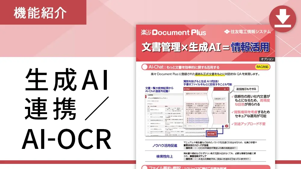 楽々Document Plusの製品の詳細や、活用例が詳しくわかる資料をご用意しています。