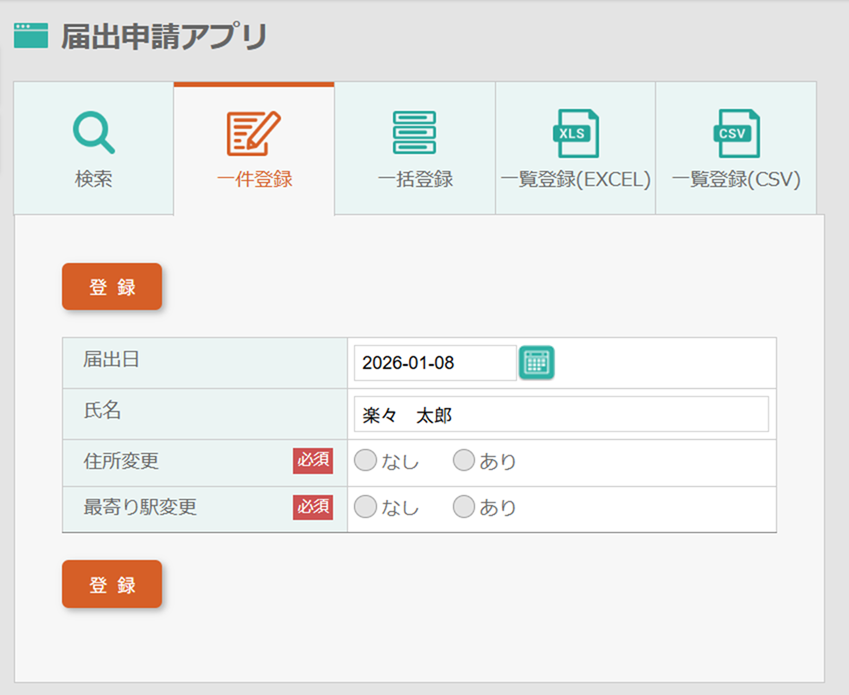 届出申請アプリで新規登録画面を開きます。