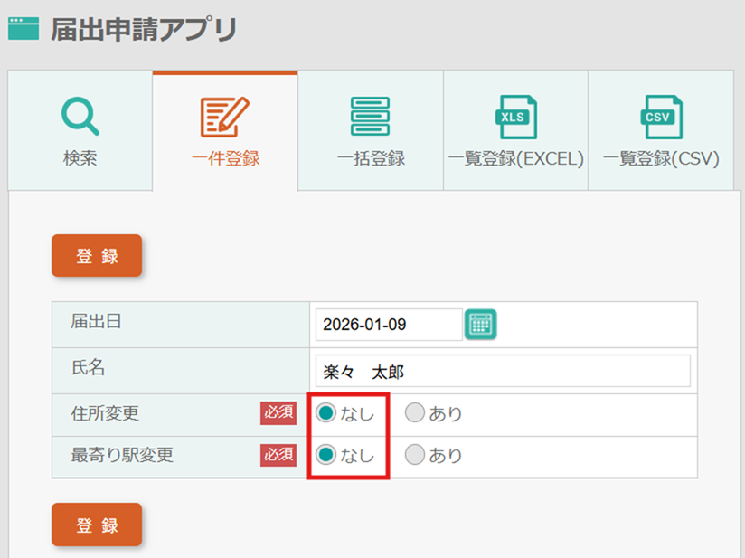 - 住所変更の有無を選択